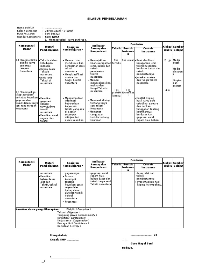Silabus 1 Lembar Seni Budaya Smk Kls 1 Semester 2 - k8 Seni Budaya Smt 1 - Contoh silabus seni budaya smk/mak kelas 10 (x) semester 1 dan 2 kurikulum 2013 edisi revisi tahun 2020.